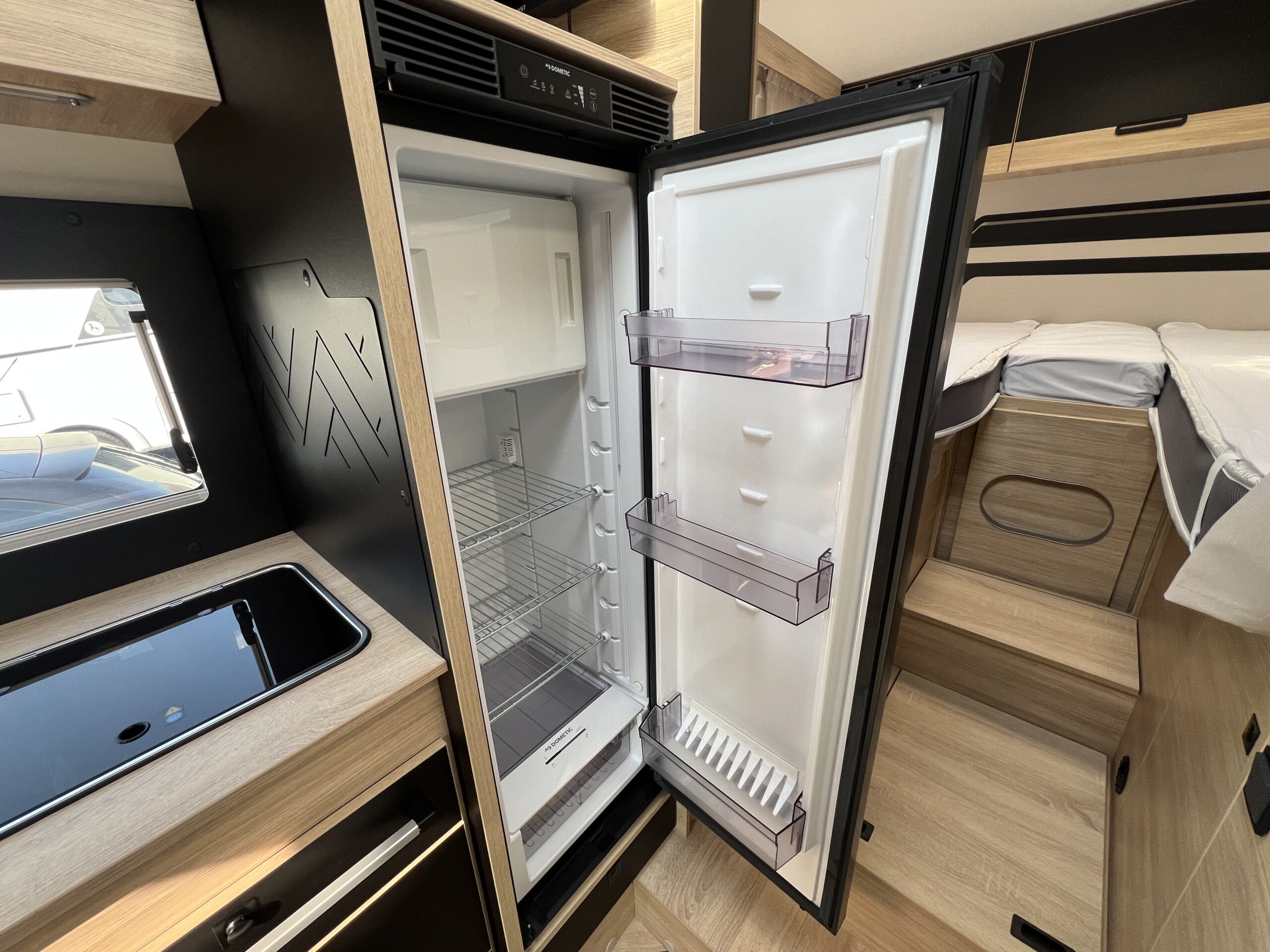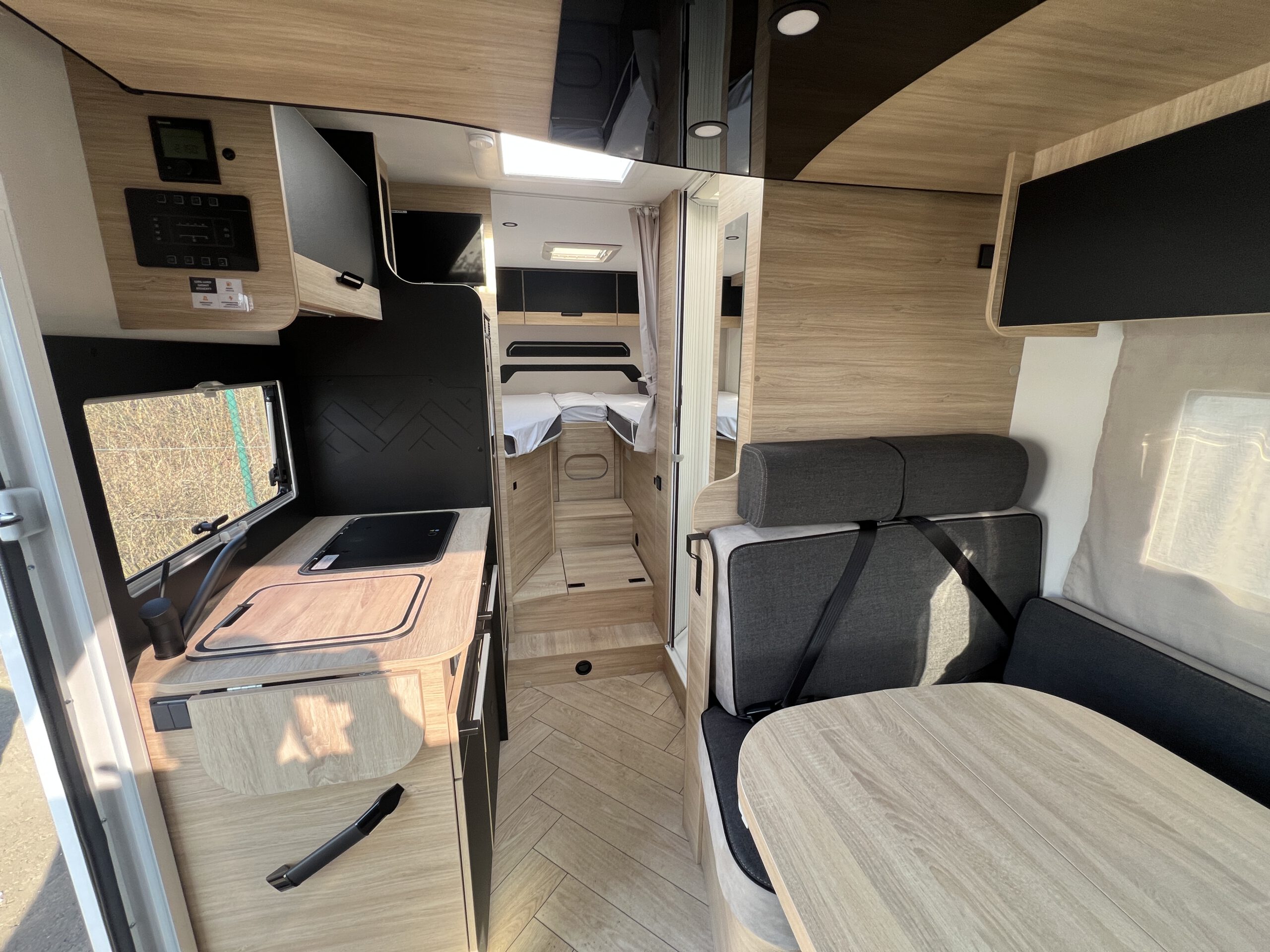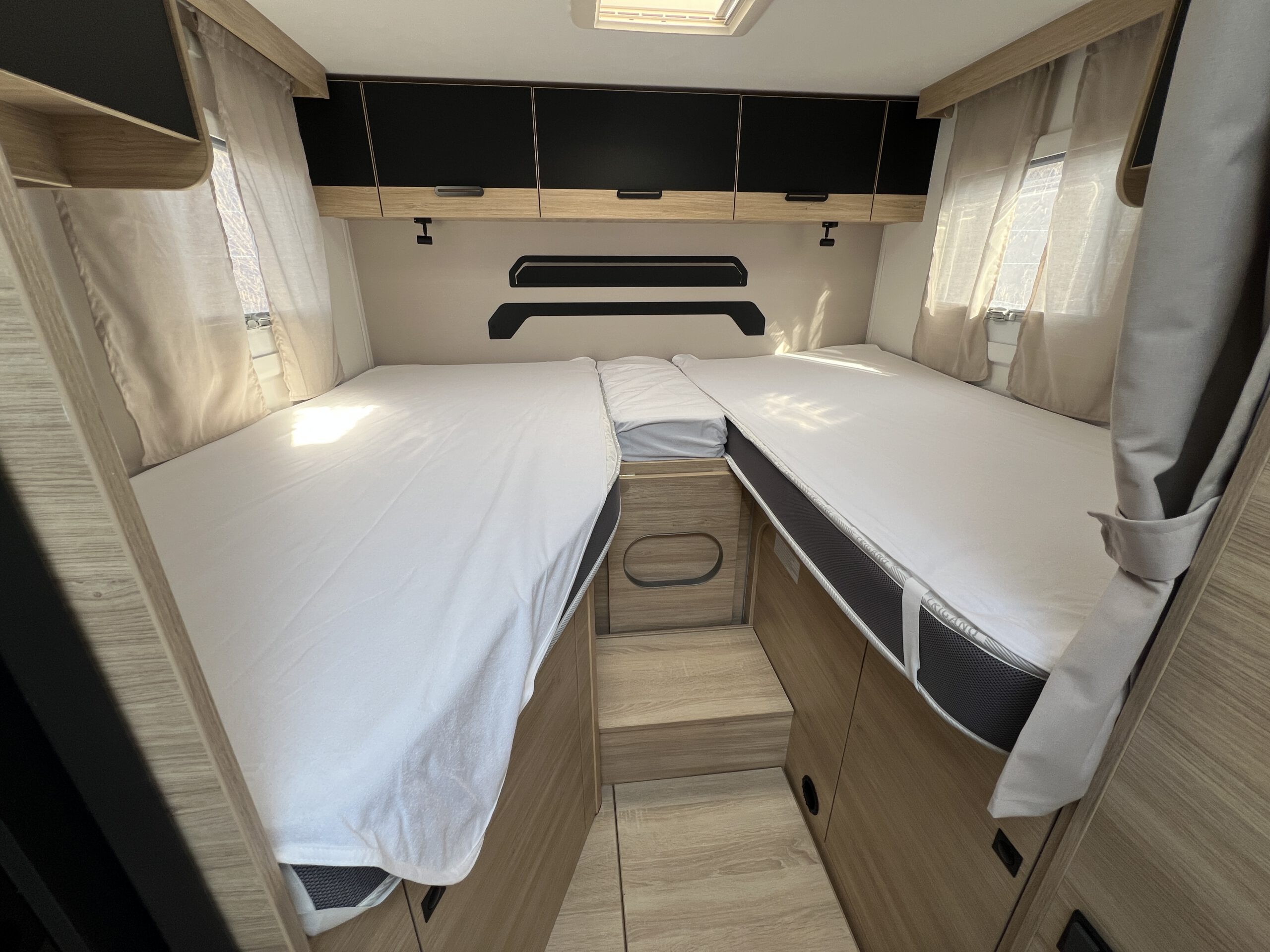 Unsere teilintegrierten Wohnmobile verfügen einen Frischwassertank mit einer Volumengröße von 110 Litern.