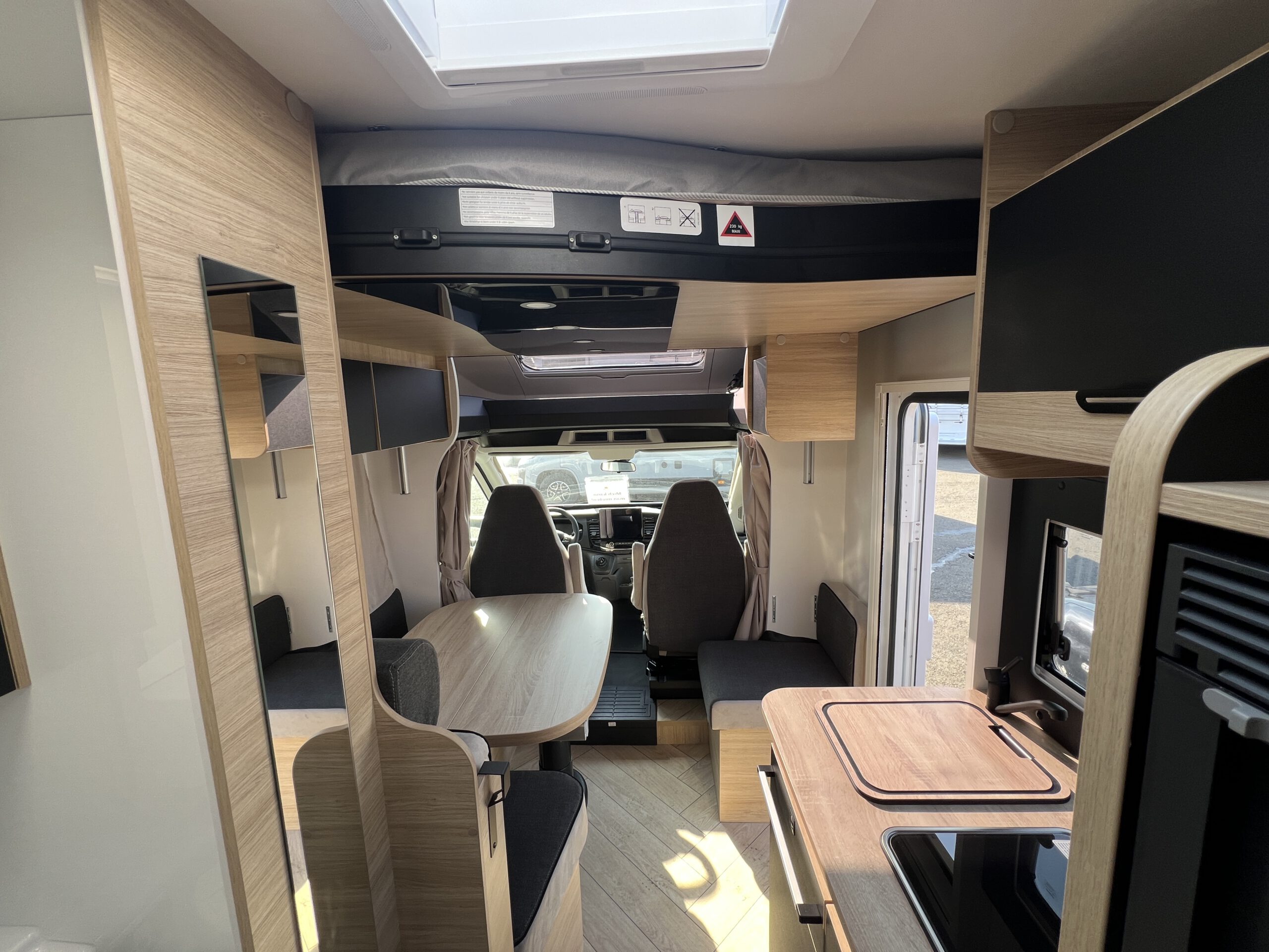 Der Chausson Titanium Line 627 hat alles an Board, um auf große Reise zu gehen. Im Innenraum findest Du Sitz- und Schlafplätze für bis zu vier Erwachsene Personen (Einzelbetten & Hubbett) und eine gut ausgestattete Küchenzeile im Fahrgastraum – inkl. Kühlschrank mit Gefrierfach. Der Fahrer- und Beifahrersitz lassen sich zur Sitzgruppe hin drehen, sodass man gemütlich am Tisch zusammen sitzen kann. Das Bad verfügt über ein Schwenkbad, äußerst praktisch! Somit hast du beim Duschen mehr Platz. Aufgrund einer Dieselheizung ist beim Chausson nur eine Gasflasche an Board.
