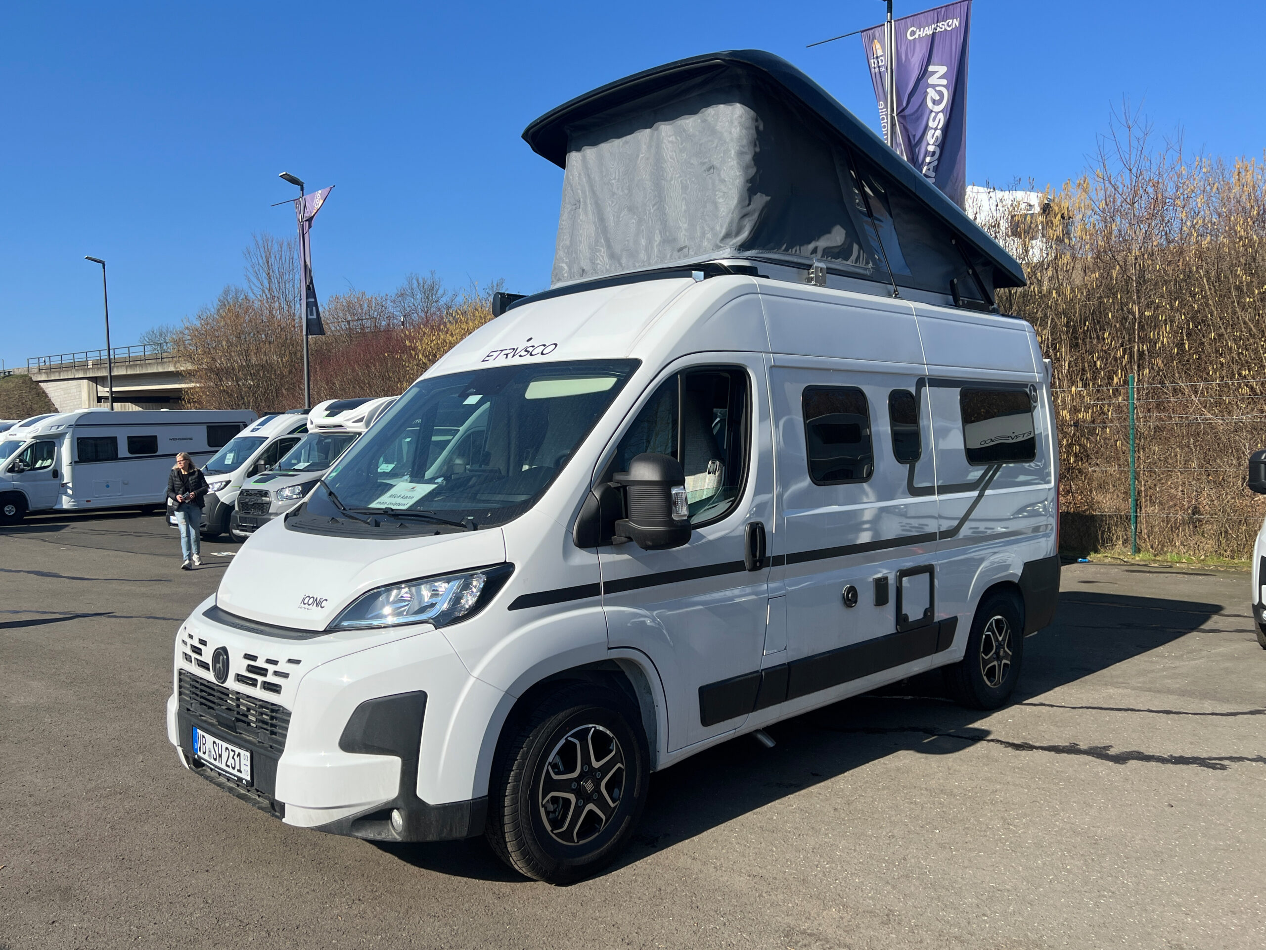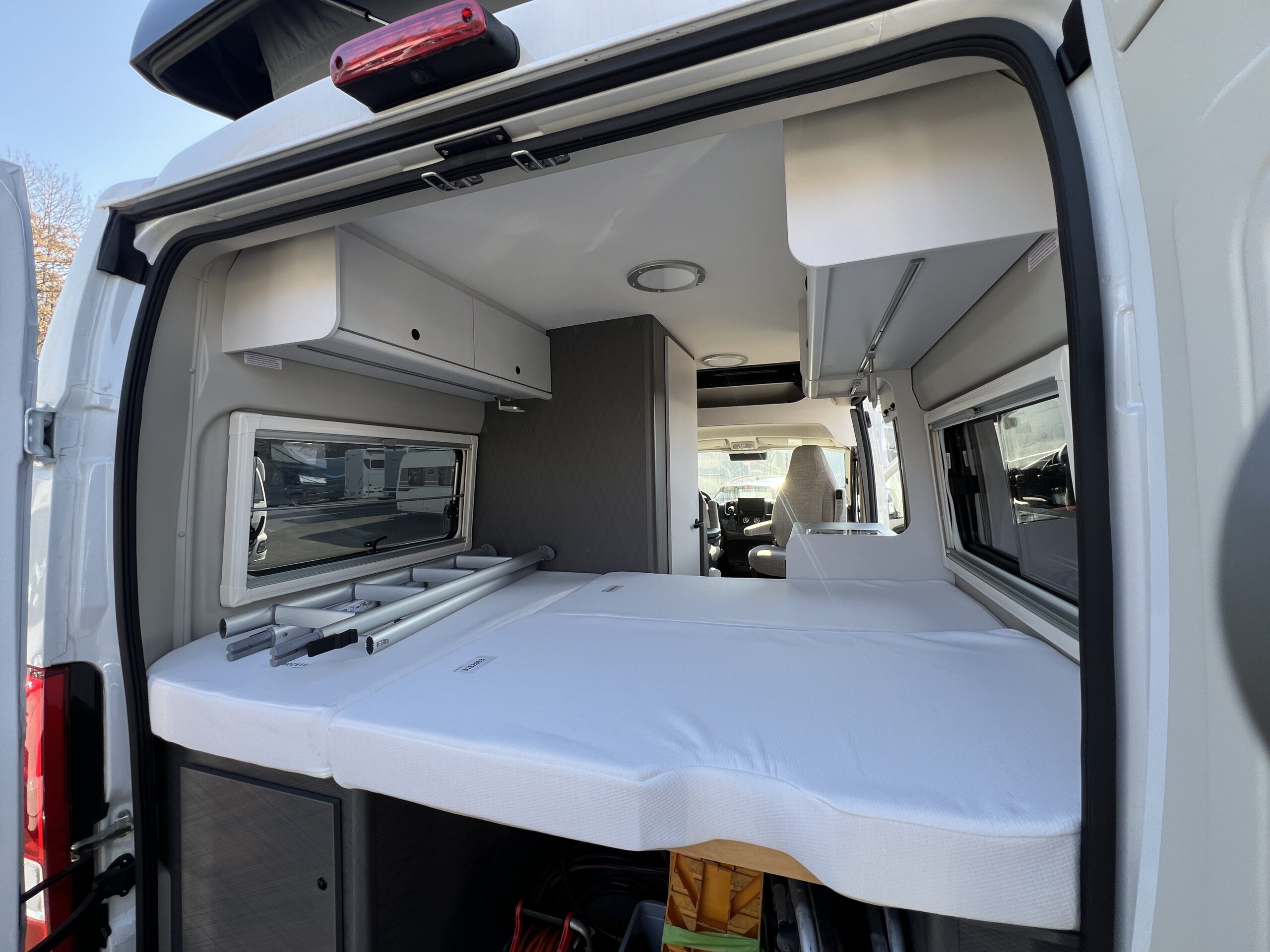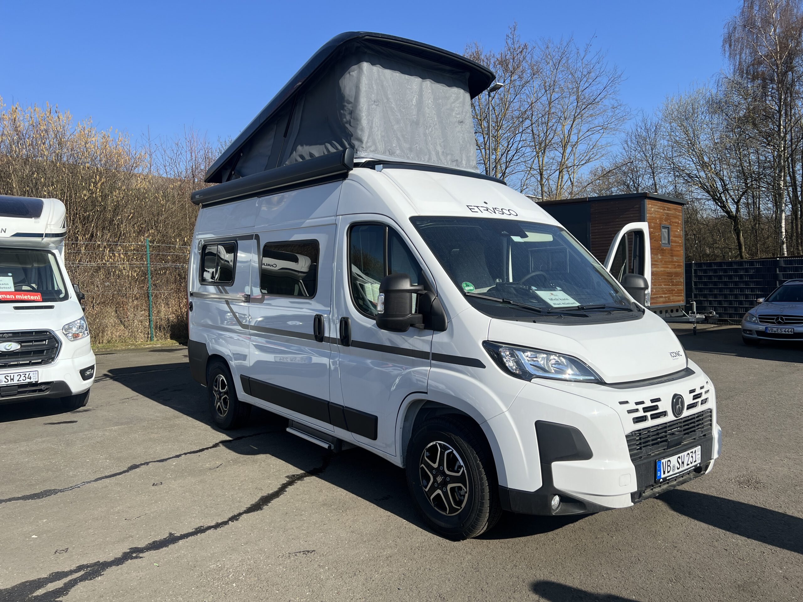 Der Etrusco CV 540 DB hat alles an Board, um einen tollen Roadtrip zu erleben. Im Innenraum finden Sie Sitzplätze für bis zu vier Personen sowie eine kleine Küchenzeile im Fahrgastraum – inkl. Kühlschrank mit Gefrierfach. Er fügt über 4 Schlafplätze: Zwei Personen können im Heckbett schlafen und zwei oben im Aufstelldach. Aufgrund seiner kompakten Größe bist Du unabhängig und kannst es Dir überall richtig gut gehen lassen.
