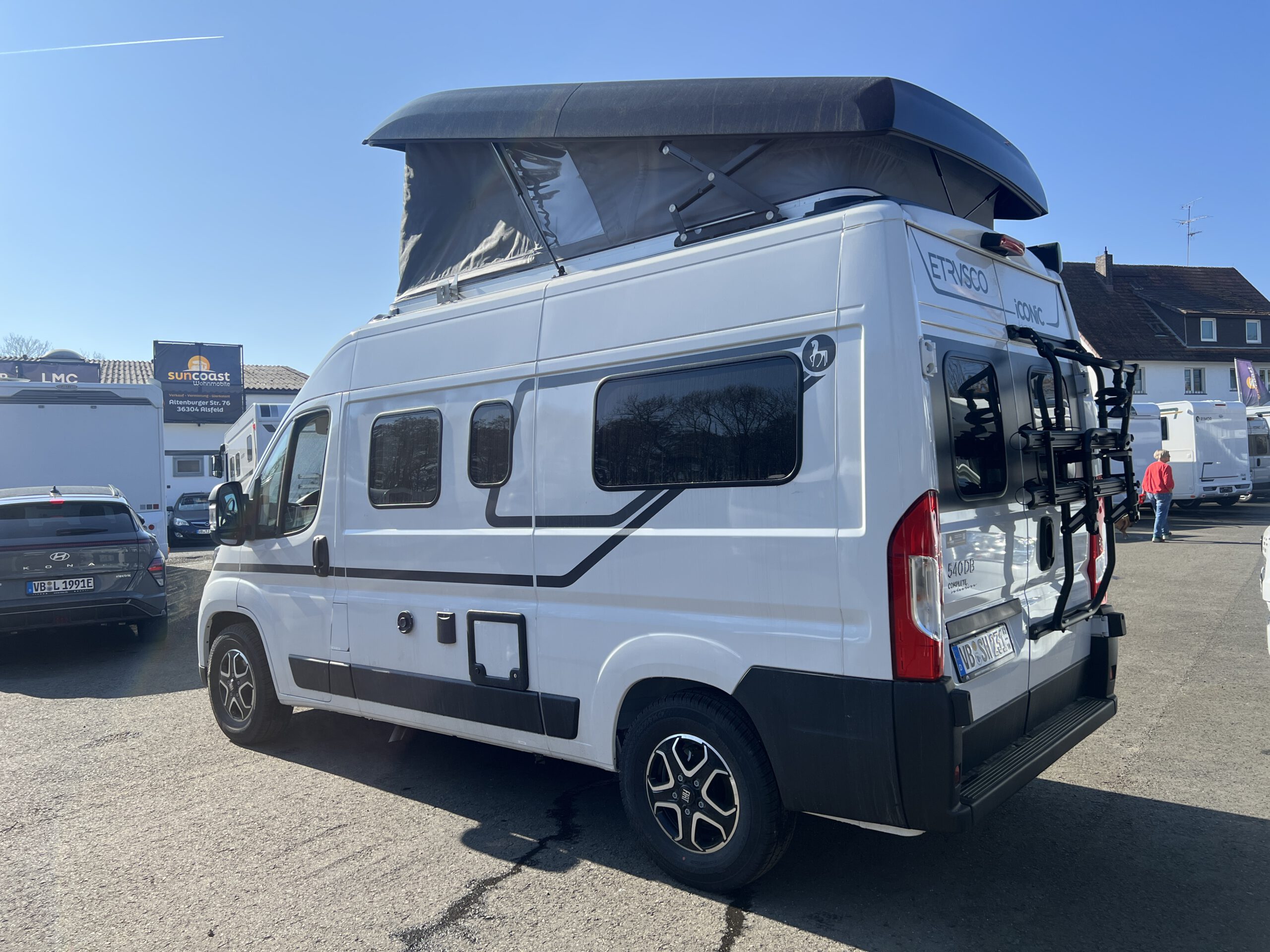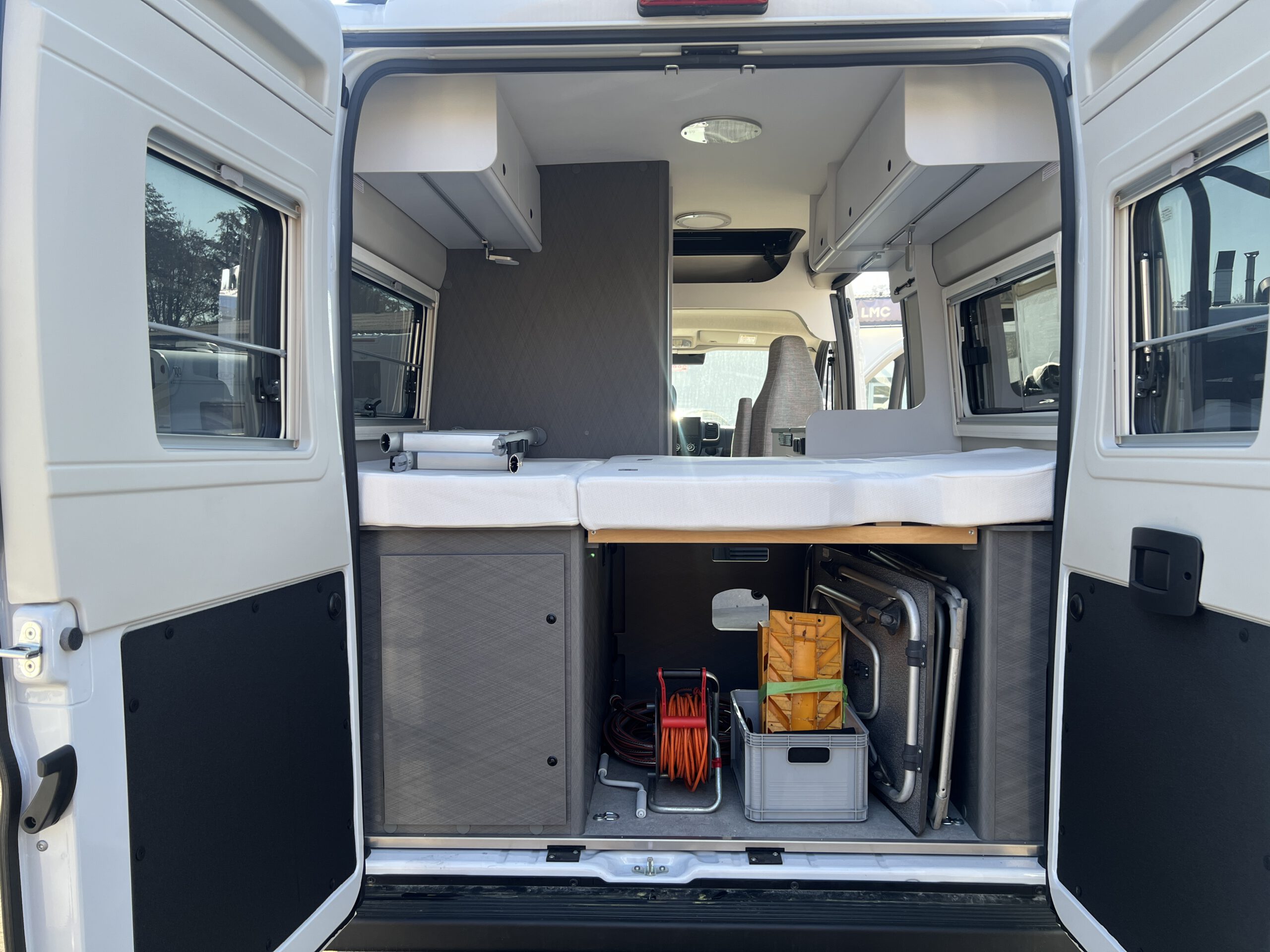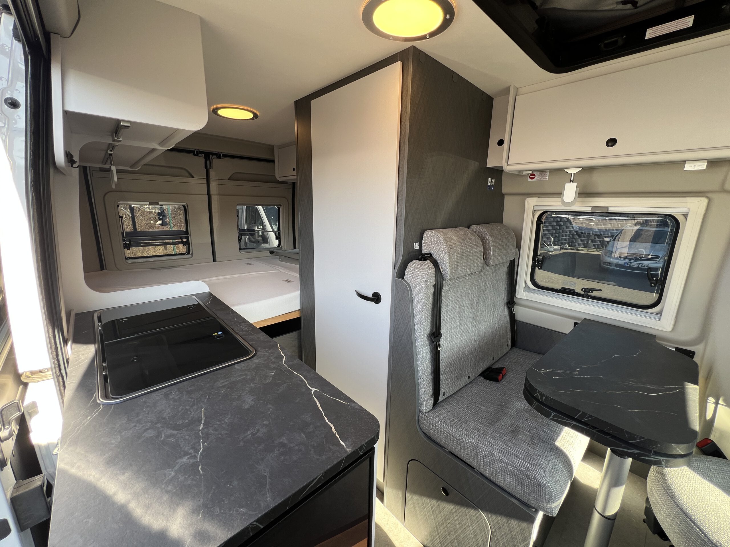 Der Etrusco CV 540 DB hat alles an Board, um einen tollen Roadtrip zu erleben. Im Innenraum finden Sie Sitzplätze für bis zu vier Personen sowie eine kleine Küchenzeile im Fahrgastraum – inkl. Kühlschrank mit Gefrierfach. Er fügt über 4 Schlafplätze: Zwei Personen können im Heckbett schlafen und zwei oben im Aufstelldach. Aufgrund seiner kompakten Größe bist Du unabhängig und kannst es Dir überall richtig gut gehen lassen.