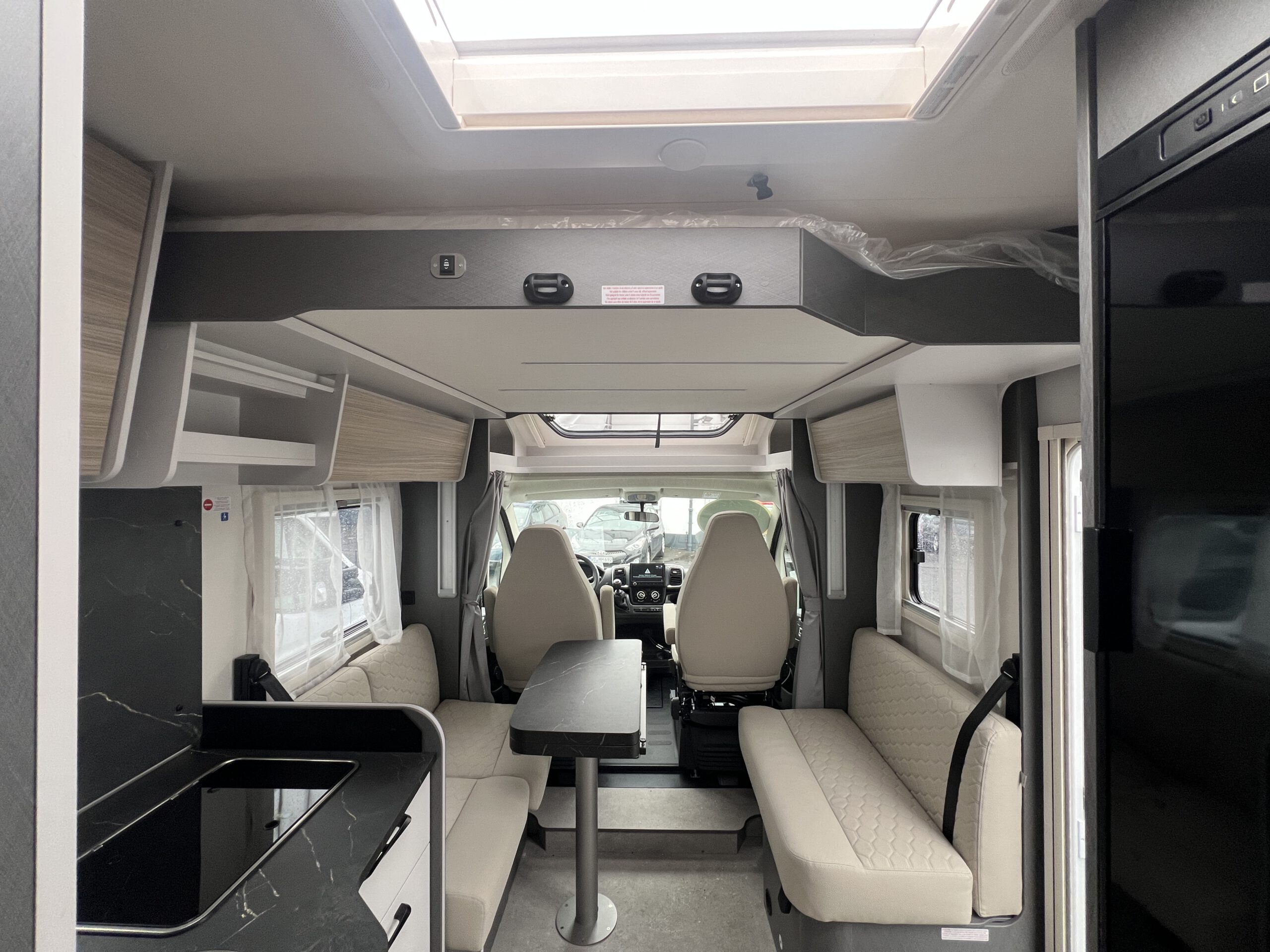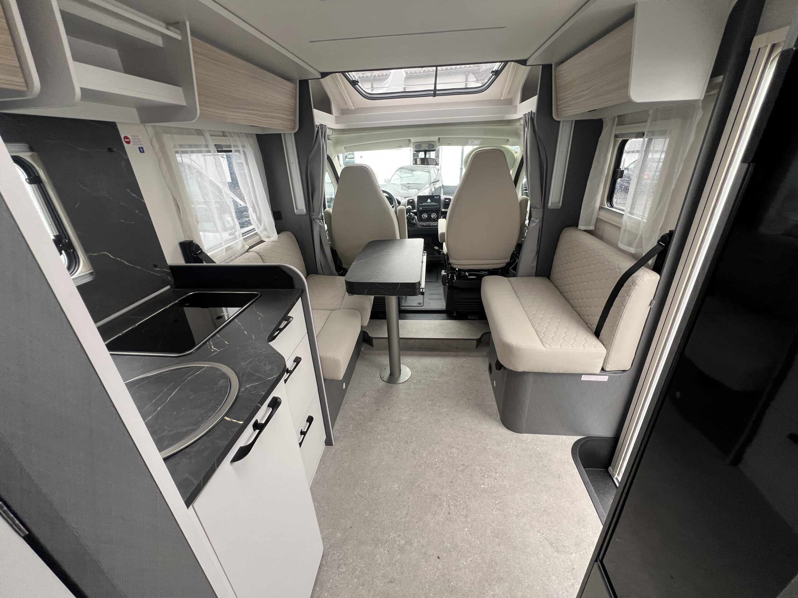 Der Etrusco T 7400 SBC hat alles an Board, um auf große Reise zu gehen. Im Innenraum findest Du Sitz- und Schlafplätze für bis zu vier Erwachsene Personen (Einzelbetten & Hubbett) und eine gut ausgestattete Küchenzeile im Fahrgastraum – inkl. Kühlschrank mit Gefrierfach. Der Fahrer- und Beifahrersitz lassen sich zur Sitzgruppe hin drehen, sodass man gemütlich am Tisch zusammen sitzen kann. So bist Du unabhängig und kannst es Dir überall richtig gut gehen lassen.